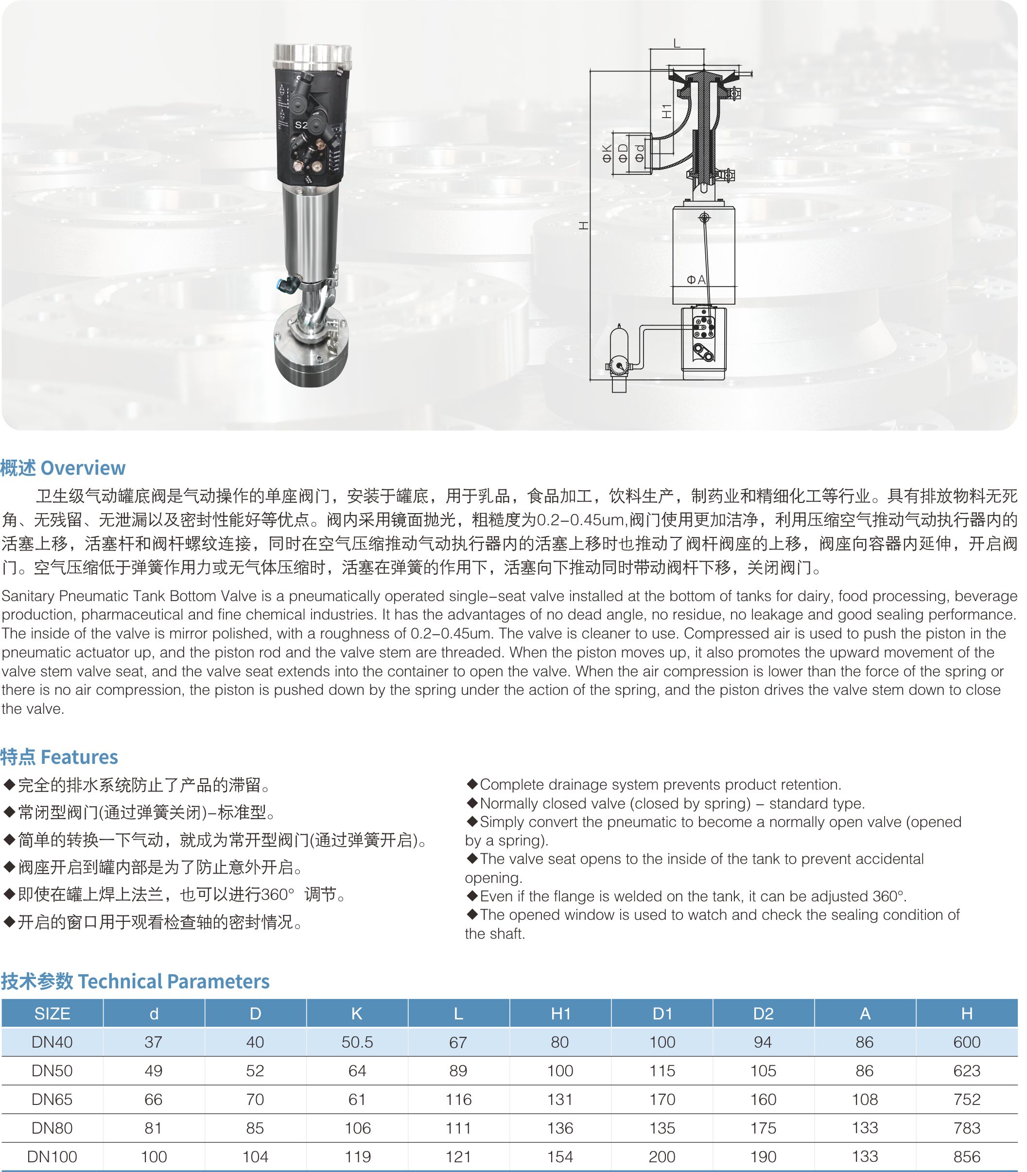 衛(wèi)生級(jí)罐底氣動(dòng)調(diào)節(jié)閥