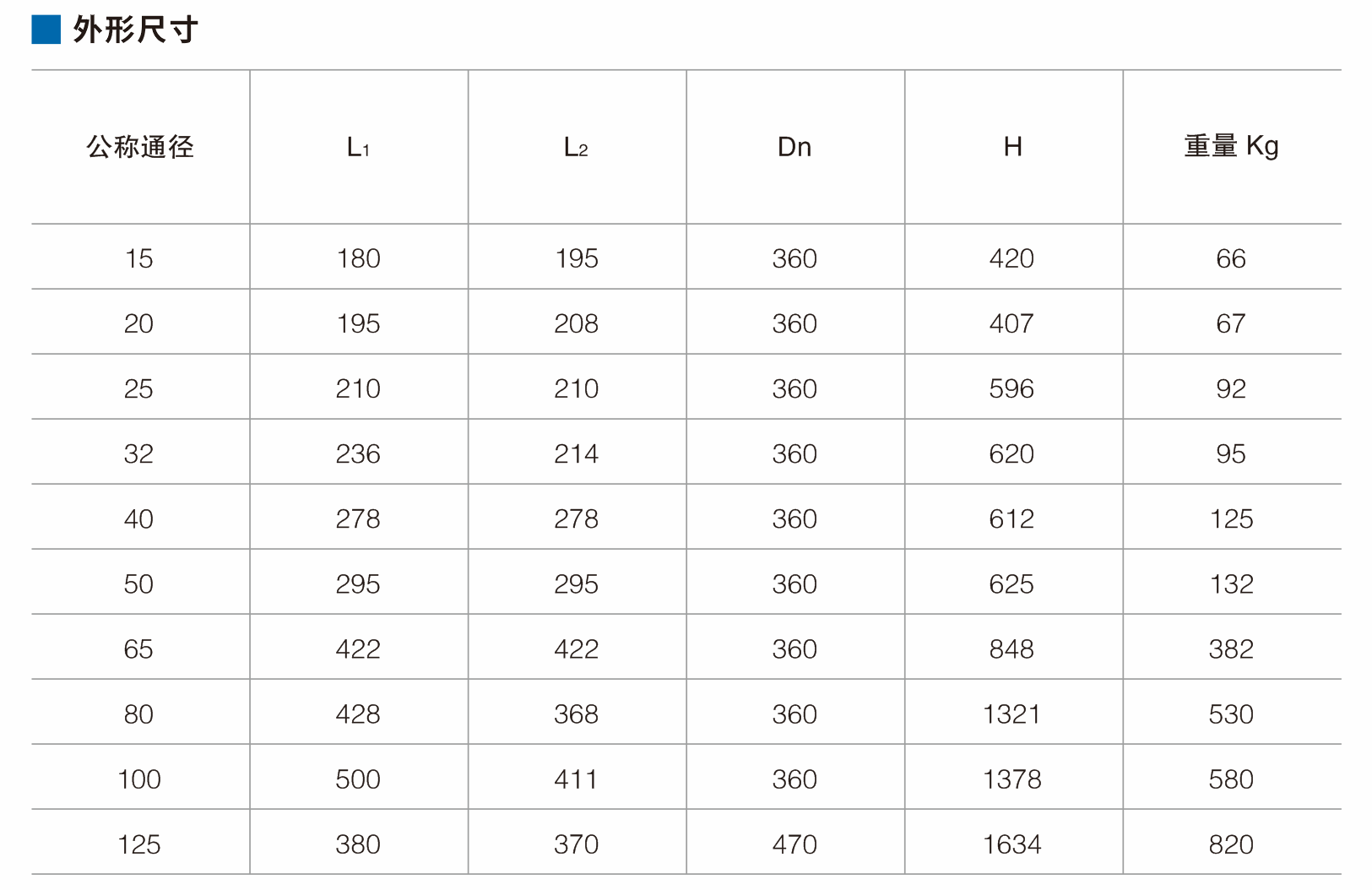 公稱通徑:DN15-125